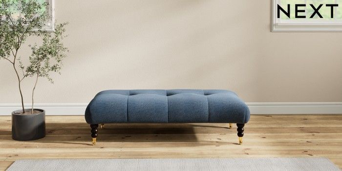 7.2.10 Erin Buttoned Back Deep Relaxed Sit Extra Large Footstool Ripple Chenille Dark Blue High Classic Turned Brass Castor - Dark | Made Click here to use our website with more accessibility support, for example screen readers