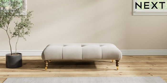 7.2.10 Erin Buttoned Back Deep Relaxed Sit Extra Large Footstool Ripple Chenille Light Natural High Classic Turned Brass Castor - Mid | Made Click here to use our website with more accessibility support, for example screen readers