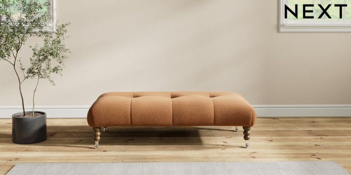7.2.10 Erin Buttoned Back Deep Relaxed Sit Extra Large Footstool Ripple Chenille Mid Rust Brown High Classic Turned Chrome Castor - Mid | Made Click here to use our website with more accessibility support, for example screen readers