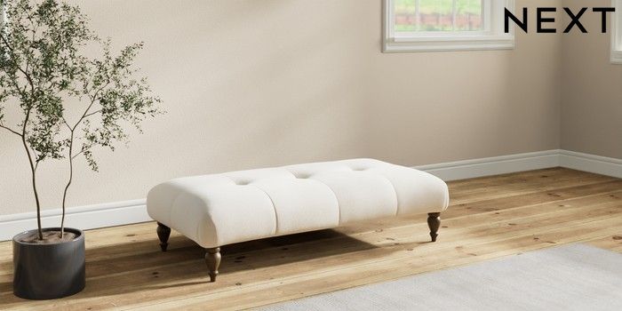 7.2.10 Erin Buttoned Back Deep Relaxed Sit Extra Large Footstool Ripple Chenille Oyster High Classic Turned - Mid | Made Click here to use our website with more accessibility support, for example screen readers