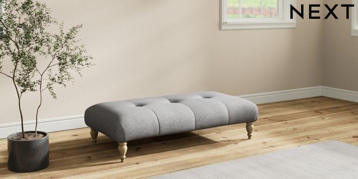 7.2.10 Erin Buttoned Back Deep Relaxed Sit Extra Large Footstool Studio Chenille Mid Grey High Classic Turned - Light | Made Click here to use our website with more accessibility support, for example screen readers