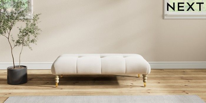 7.2.10 Erin Buttoned Back Deep Relaxed Sit Extra Large Footstool Studio Chenille Oyster High Classic Turned Brass Castor - Light | Made Click here to use our website with more accessibility support, for example screen readers