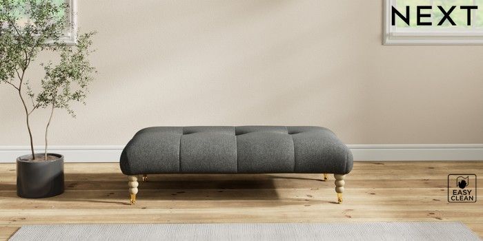 7.2.10 Erin Buttoned Back Deep Relaxed Sit Extra Large Footstool Tweedy Blend Easy Clean Charcoal Grey High Classic Turned Brass Castor - Light | Made Click here to use our website with more accessibility support, for example screen readers