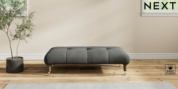 7.2.10 Erin Buttoned Back Deep Relaxed Sit Extra Large Footstool Tweedy Blend Easy Clean Charcoal Grey High Classic Turned Chrome Castor - Mid | Made Click here to use our website with more accessibility support, for example screen readers