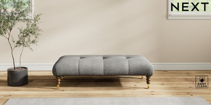 7.2.10 Erin Buttoned Back Deep Relaxed Sit Extra Large Footstool Tweedy Blend Easy Clean Dark Grey High Classic Turned Brass Castor - Mid | Made Click here to use our website with more accessibility support, for example screen readers