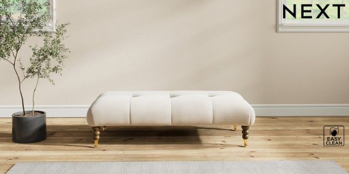 7.2.10 Erin Buttoned Back Deep Relaxed Sit Extra Large Footstool Tweedy Blend Easy Clean Oyster High Classic Turned Brass Castor - Mid | Made Click here to use our website with more accessibility support, for example screen readers