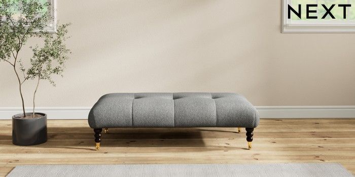 7.2.10 Erin Buttoned Back Deep Relaxed Sit Extra Large Footstool Tweedy Chenille Dark Grey High Classic Turned Brass Castor - Dark | Made Click here to use our website with more accessibility support, for example screen readers
