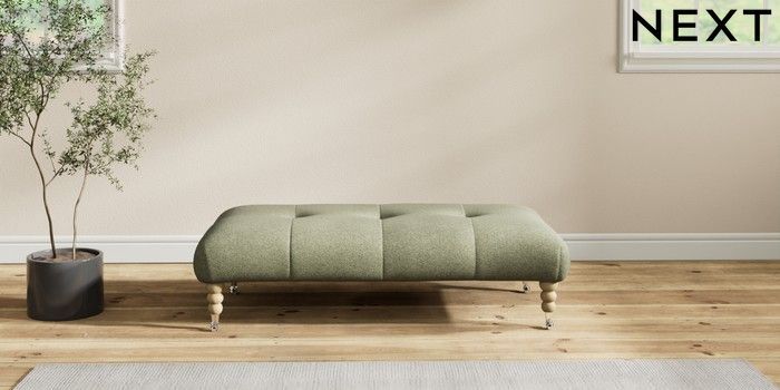 7.2.10 Erin Buttoned Back Deep Relaxed Sit Extra Large Footstool Tweedy Chenille Mid Moss Green High Classic Turned Chrome Castor - Light | Made Click here to use our website with more accessibility support, for example screen readers