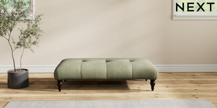 7.2.10 Erin Buttoned Back Deep Relaxed Sit Extra Large Footstool Tweedy Chenille Mid Moss Green High Classic Turned - Dark | Made Click here to use our website with more accessibility support, for example screen readers