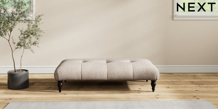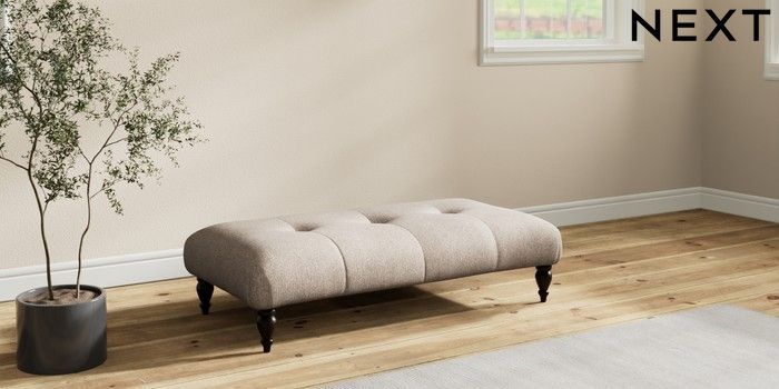 7.2.10 Erin Buttoned Back Deep Relaxed Sit Extra Large Footstool Tweedy Chenille Mid Natural High Classic Turned - Dark | Made Click here to use our website with more accessibility support, for example screen readers