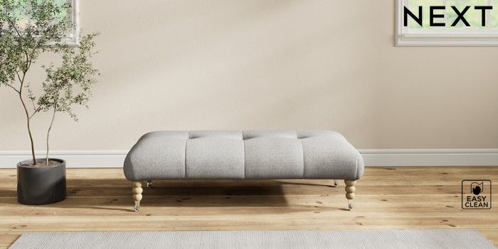 7.2.10 Erin Buttoned Back Deep Relaxed Sit Extra Large Footstool Woven Chenille Easy Clean Light Grey High Classic Turned Chrome Castor - Light | Made Click here to use our website with more accessibility support, for example screen readers