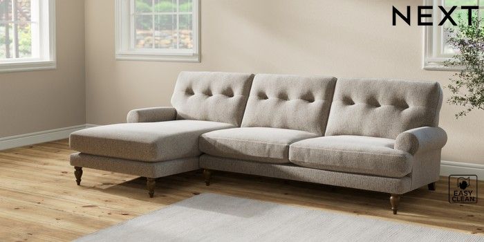 Add charm to your living space with the Erin Button Back Sofa. Its elegant scroll arms and classic button-back cushions create a timeless look. You'll love its "Relaxed Sit" cushions, specially designed for ultimate comfort. These cushions are made with clever foam and fibre, giving you a wonderfully soft, plump feel. To keep them looking their best, simply plump and turn them regularly. Plus, you can make the Erin your own by choosing from a huge range of coloured fabrics.