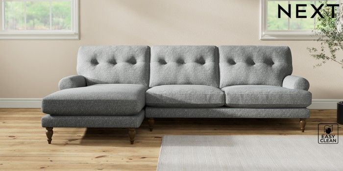 7.2.10 Erin Buttoned Back Deep Relaxed Sit Medium Sofa Chaise - Left Hand Chunky Boucle Easy Clean Mid Grey High Classic Turned - Mid | Made Click here to use our website with more accessibility support, for example screen readers