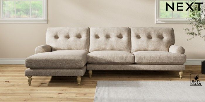 7.2.10 Erin Buttoned Back Deep Relaxed Sit Medium Sofa Chaise - Left Hand Chunky Boucle Easy Clean Mid Natural High Classic Turned - Light | Made Click here to use our website with more accessibility support, for example screen readers
