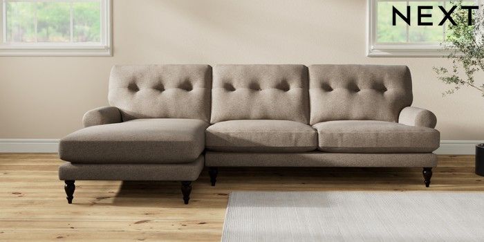 7.2.10 Erin Buttoned Back Deep Relaxed Sit Medium Sofa Chaise - Left Hand Chunky Weave Dark Natural High Classic Turned - Dark | Made Click here to use our website with more accessibility support, for example screen readers
