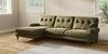 7.2.10 Erin Buttoned Back Deep Relaxed Sit Medium Sofa Chaise - Left Hand Cotswold Chenille Dark Green High Classic Turned Brass Castor - Mid | Made Click here to use our website with more accessibility support, for example screen readers