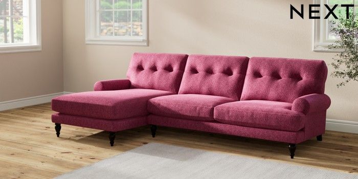 7.2.10 Erin Buttoned Back Deep Relaxed Sit Medium Sofa Chaise - Left Hand Cotswold Chenille Dark Raspberry Pink High Classic Turned - Dark | Made Click here to use our website with more accessibility support, for example screen readers