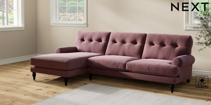 7.2.10 Erin Buttoned Back Deep Relaxed Sit Medium Sofa Chaise - Left Hand Fine Chenille Easy Clean Mid Mulberry Purple High Classic Turned - Dark | Made Click here to use our website with more accessibility support, for example screen readers