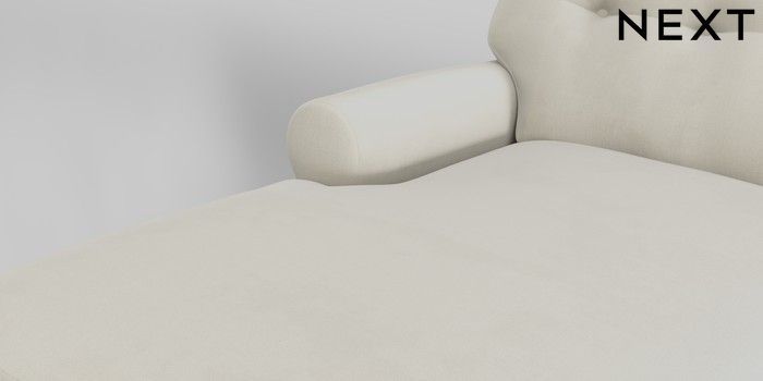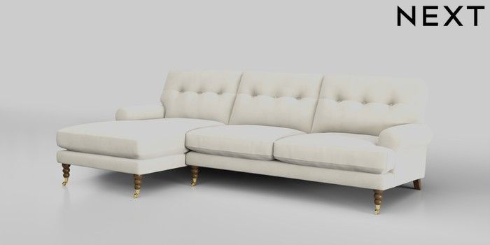 7.2.10 Erin Buttoned Back Deep Relaxed Sit Medium Sofa Chaise - Left Hand Luxe Chenille Oyster High Classic Turned Brass Castor - Mid | Made Click here to use our website with more accessibility support, for example screen readers