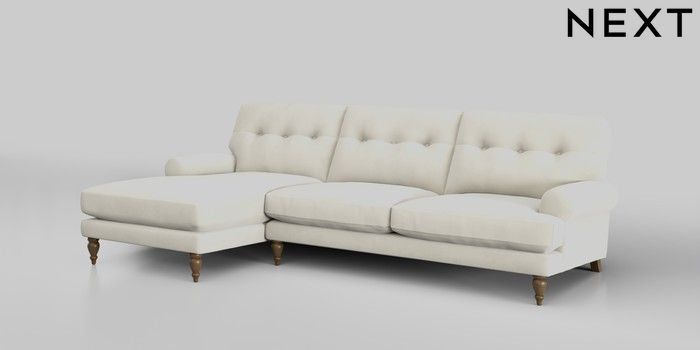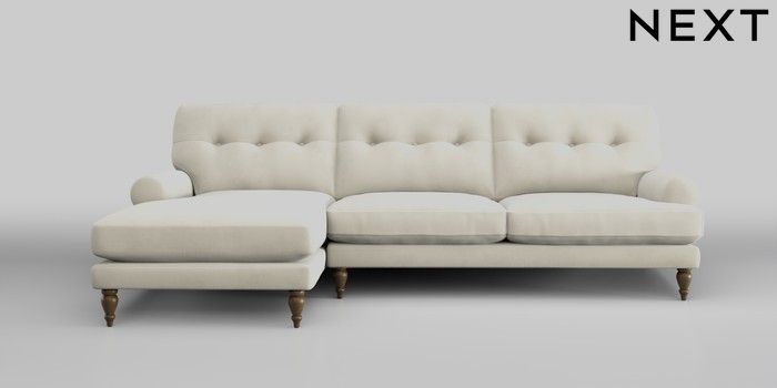 7.2.10 Erin Buttoned Back Deep Relaxed Sit Medium Sofa Chaise - Left Hand Luxe Chenille Oyster High Classic Turned - Mid | Made Click here to use our website with more accessibility support, for example screen readers
