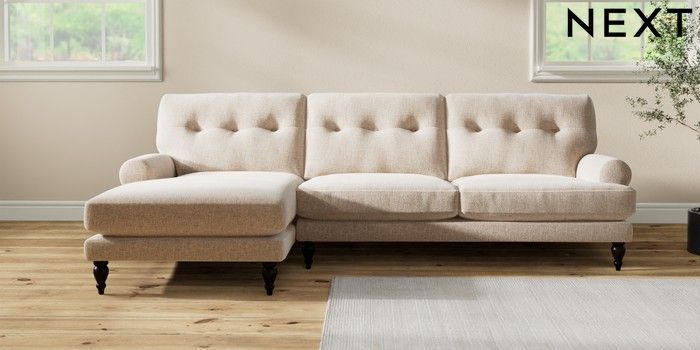 7.2.10 Erin Buttoned Back Deep Relaxed Sit Medium Sofa Chaise - Left Hand Multi Weave Mid Natural High Classic Turned - Dark | Made Click here to use our website with more accessibility support, for example screen readers