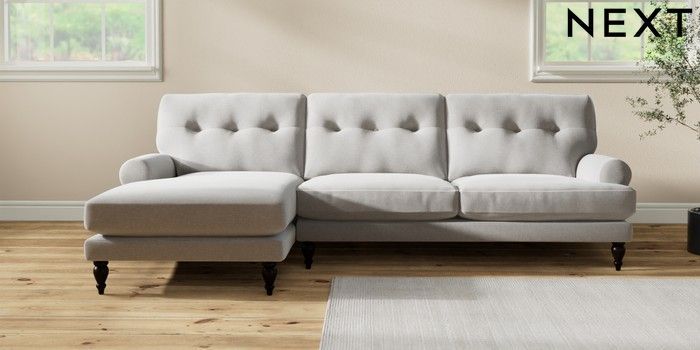 7.2.10 Erin Buttoned Back Deep Relaxed Sit Medium Sofa Chaise - Left Hand Natural Mix Light Grey High Classic Turned - Dark | Made Click here to use our website with more accessibility support, for example screen readers
