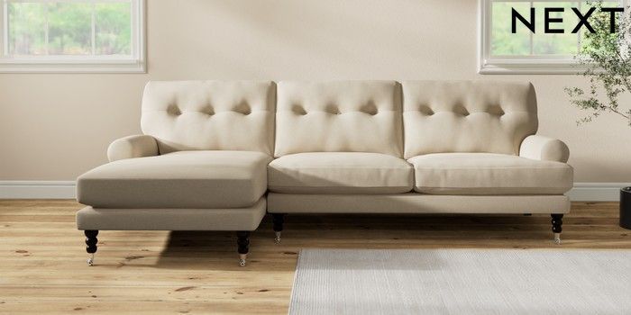 7.2.10 Erin Buttoned Back Deep Relaxed Sit Medium Sofa Chaise - Left Hand Natural Mix Light Natural High Classic Turned Chrome Castor - Dark | Made Click here to use our website with more accessibility support, for example screen readers