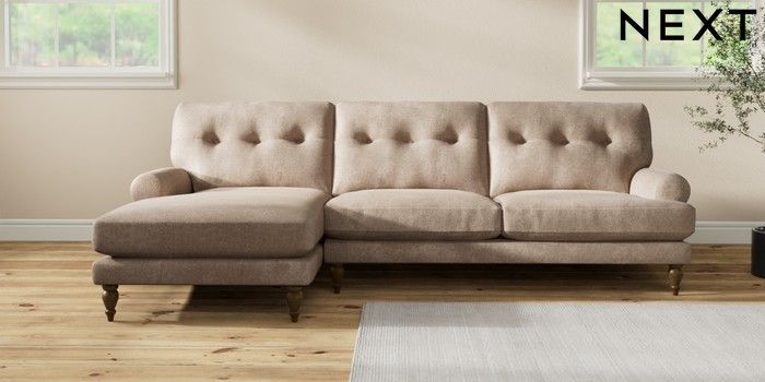 7.2.10 Erin Buttoned Back Deep Relaxed Sit Medium Sofa Chaise - Left Hand Plush Chenille Mid Natural High Classic Turned - Mid | Made Click here to use our website with more accessibility support, for example screen readers
