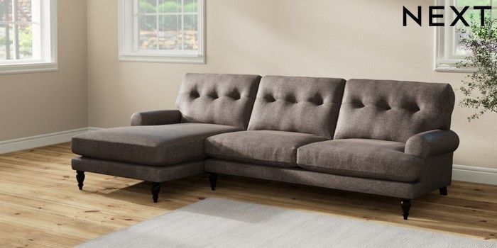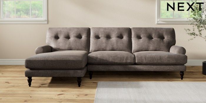7.2.10 Erin Buttoned Back Deep Relaxed Sit Medium Sofa Chaise - Left Hand Plush Chenille Mink Brown High Classic Turned - Dark | Made Click here to use our website with more accessibility support, for example screen readers