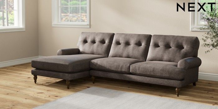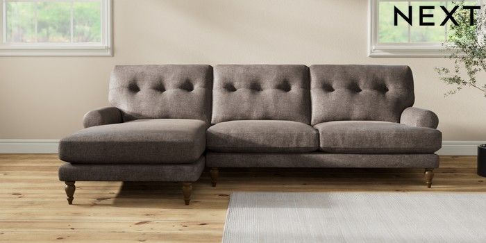 7.2.10 Erin Buttoned Back Deep Relaxed Sit Medium Sofa Chaise - Left Hand Plush Chenille Mink Brown High Classic Turned - Mid | Made Click here to use our website with more accessibility support, for example screen readers
