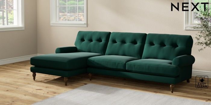 7.2.10 Erin Buttoned Back Deep Relaxed Sit Medium Sofa Chaise - Left Hand Plush Velvet Easy Clean Bottle Green High Classic Turned - Mid | Made Click here to use our website with more accessibility support, for example screen readers