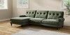 7.2.10 Erin Buttoned Back Deep Relaxed Sit Medium Sofa Chaise - Left Hand Relaxed Linen Look Dark Green High Classic Turned Brass Castor - Dark | Made Click here to use our website with more accessibility support, for example screen readers