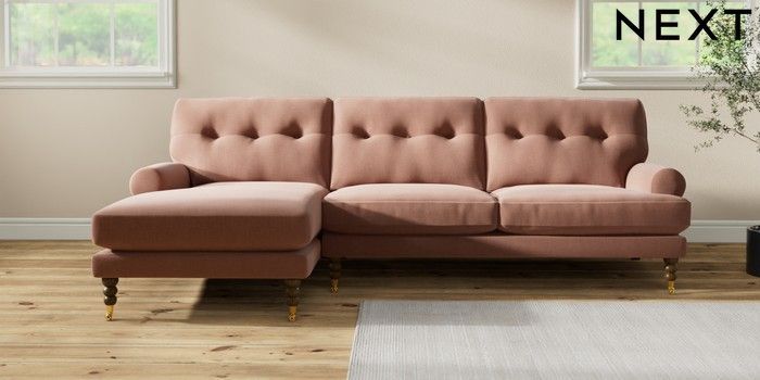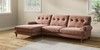 7.2.10 Erin Buttoned Back Deep Relaxed Sit Medium Sofa Chaise - Left Hand Relaxed Linen Look Light Rust Brown High Classic Turned Brass Castor - Mid | Made Click here to use our website with more accessibility support, for example screen readers