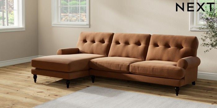 7.2.10 Erin Buttoned Back Deep Relaxed Sit Medium Sofa Chaise - Left Hand Ripple Chenille Mid Rust Brown High Classic Turned - Dark | Made Click here to use our website with more accessibility support, for example screen readers