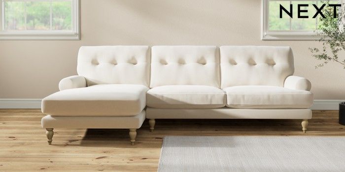7.2.10 Erin Buttoned Back Deep Relaxed Sit Medium Sofa Chaise - Left Hand Ripple Chenille Oyster High Classic Turned - Light | Made Click here to use our website with more accessibility support, for example screen readers