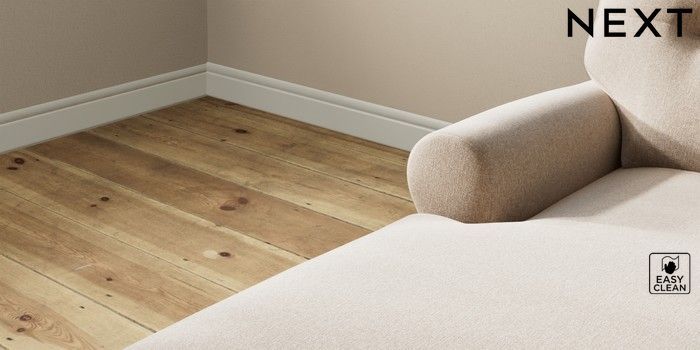 7.2.10 Erin Buttoned Back Deep Relaxed Sit Medium Sofa Chaise - Left Hand Tweedy Blend Easy Clean Light Dove Natural High Classic Turned Brass Castor - Mid | Made Click here to use our website with more accessibility support, for example screen readers
