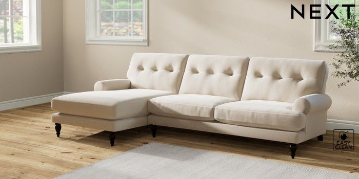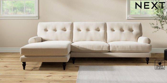 7.2.10 Erin Buttoned Back Deep Relaxed Sit Medium Sofa Chaise - Left Hand Tweedy Blend Easy Clean Oyster High Classic Turned - Dark | Made Click here to use our website with more accessibility support, for example screen readers