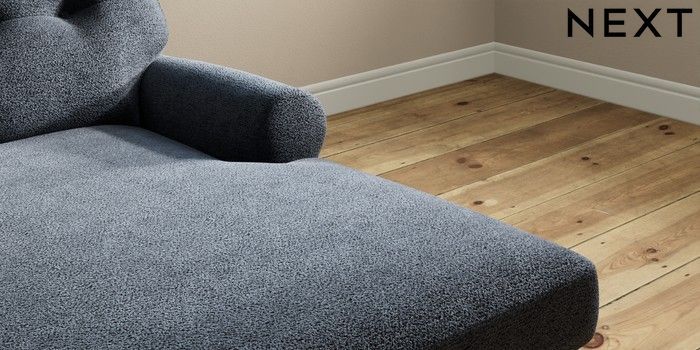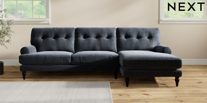 7.2.10 Erin Buttoned Back Deep Relaxed Sit Medium Sofa Chaise - Right Hand Boucle Chenille Dark Slate Blue High Classic Turned - Dark | Made Click here to use our website with more accessibility support, for example screen readers