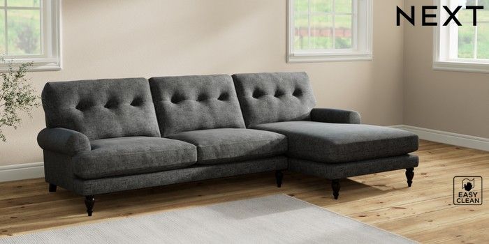 7.2.10 Erin Buttoned Back Deep Relaxed Sit Medium Sofa Chaise - Right Hand Boucle Weave Easy Clean Charcoal Grey High Classic Turned - Dark | Made Click here to use our website with more accessibility support, for example screen readers