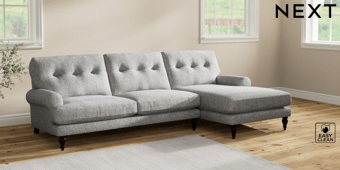7.2.10 Erin Buttoned Back Deep Relaxed Sit Medium Sofa Chaise - Right Hand Chunky Boucle Easy Clean Light Grey High Classic Turned - Dark | Made Click here to use our website with more accessibility support, for example screen readers