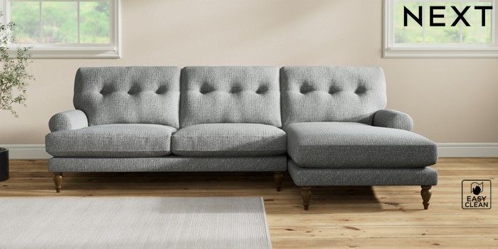 7.2.10 Erin Buttoned Back Deep Relaxed Sit Medium Sofa Chaise - Right Hand Chunky Boucle Easy Clean Mid Grey High Classic Turned - Mid | Made Click here to use our website with more accessibility support, for example screen readers
