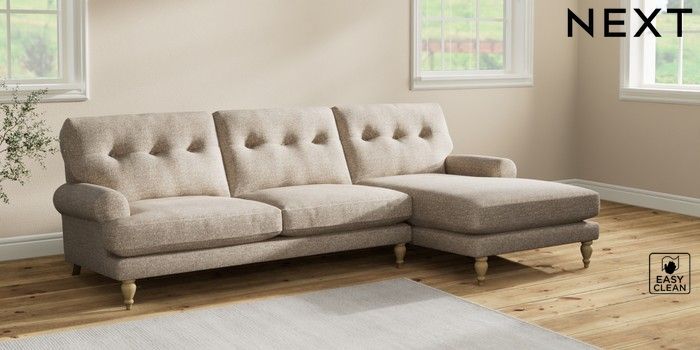 7.2.10 Erin Buttoned Back Deep Relaxed Sit Medium Sofa Chaise - Right Hand Chunky Boucle Easy Clean Mid Natural High Classic Turned - Light | Made Click here to use our website with more accessibility support, for example screen readers