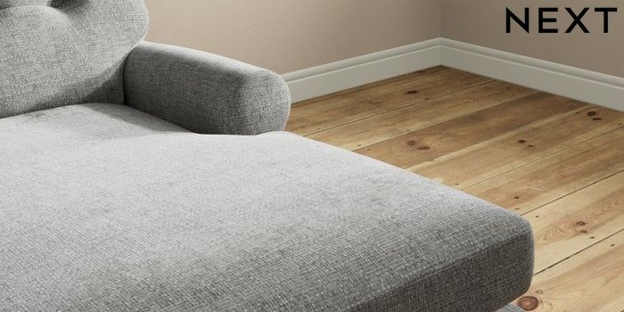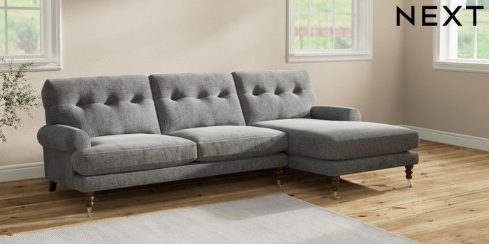 7.2.10 Erin Buttoned Back Deep Relaxed Sit Medium Sofa Chaise - Right Hand Chunky Chenille Dark Grey High Classic Turned Chrome Castor - Mid | Made Click here to use our website with more accessibility support, for example screen readers
