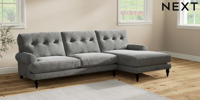 7.2.10 Erin Buttoned Back Deep Relaxed Sit Medium Sofa Chaise - Right Hand Chunky Chenille Dark Grey High Classic Turned - Dark | Made Click here to use our website with more accessibility support, for example screen readers