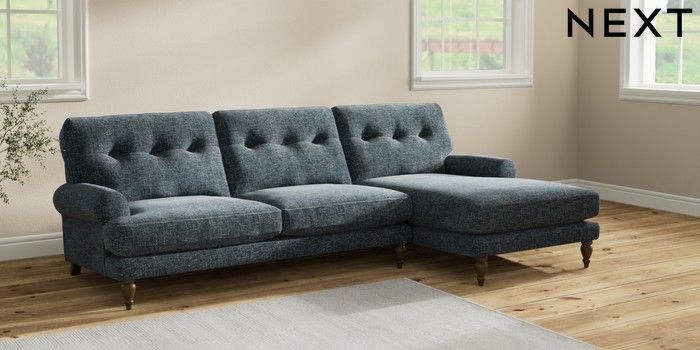 7.2.10 Erin Buttoned Back Deep Relaxed Sit Medium Sofa Chaise - Right Hand Chunky Chenille Dark Navy Blue High Classic Turned - Mid | Made Click here to use our website with more accessibility support, for example screen readers