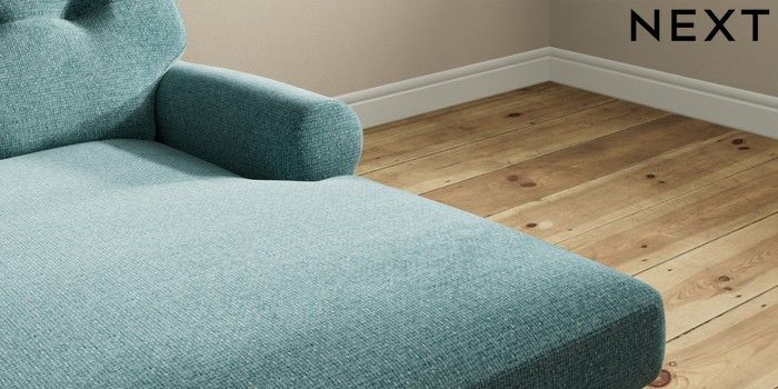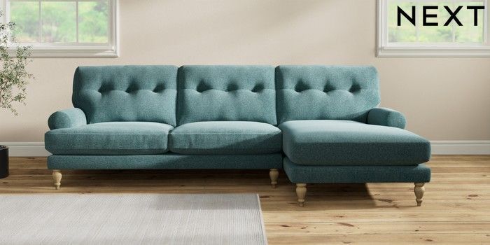 7.2.10 Erin Buttoned Back Deep Relaxed Sit Medium Sofa Chaise - Right Hand Chunky Chenille Mid Teal Green High Classic Turned - Light | Made Click here to use our website with more accessibility support, for example screen readers
