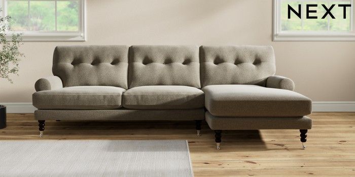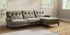 7.2.10 Erin Buttoned Back Deep Relaxed Sit Medium Sofa Chaise - Right Hand Chunky Marl Light Olive Green High Classic Turned Chrome Castor - Dark | Made Click here to use our website with more accessibility support, for example screen readers