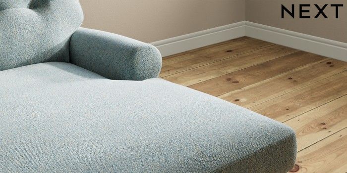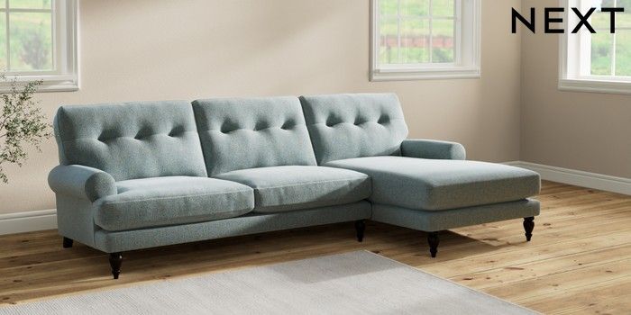 7.2.10 Erin Buttoned Back Deep Relaxed Sit Medium Sofa Chaise - Right Hand Chunky Marl Mid Blue High Classic Turned - Dark | Made Click here to use our website with more accessibility support, for example screen readers