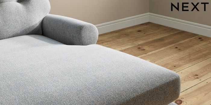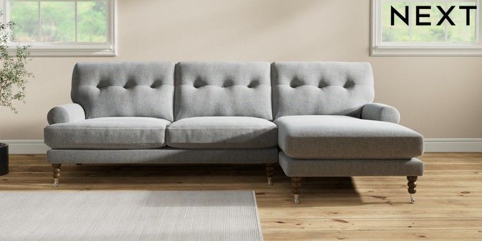 7.2.10 Erin Buttoned Back Deep Relaxed Sit Medium Sofa Chaise - Right Hand Chunky Marl Mid Grey High Classic Turned Chrome Castor - Mid | Made Click here to use our website with more accessibility support, for example screen readers
