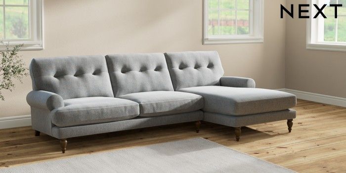 7.2.10 Erin Buttoned Back Deep Relaxed Sit Medium Sofa Chaise - Right Hand Chunky Marl Mid Grey High Classic Turned - Mid | Made Click here to use our website with more accessibility support, for example screen readers